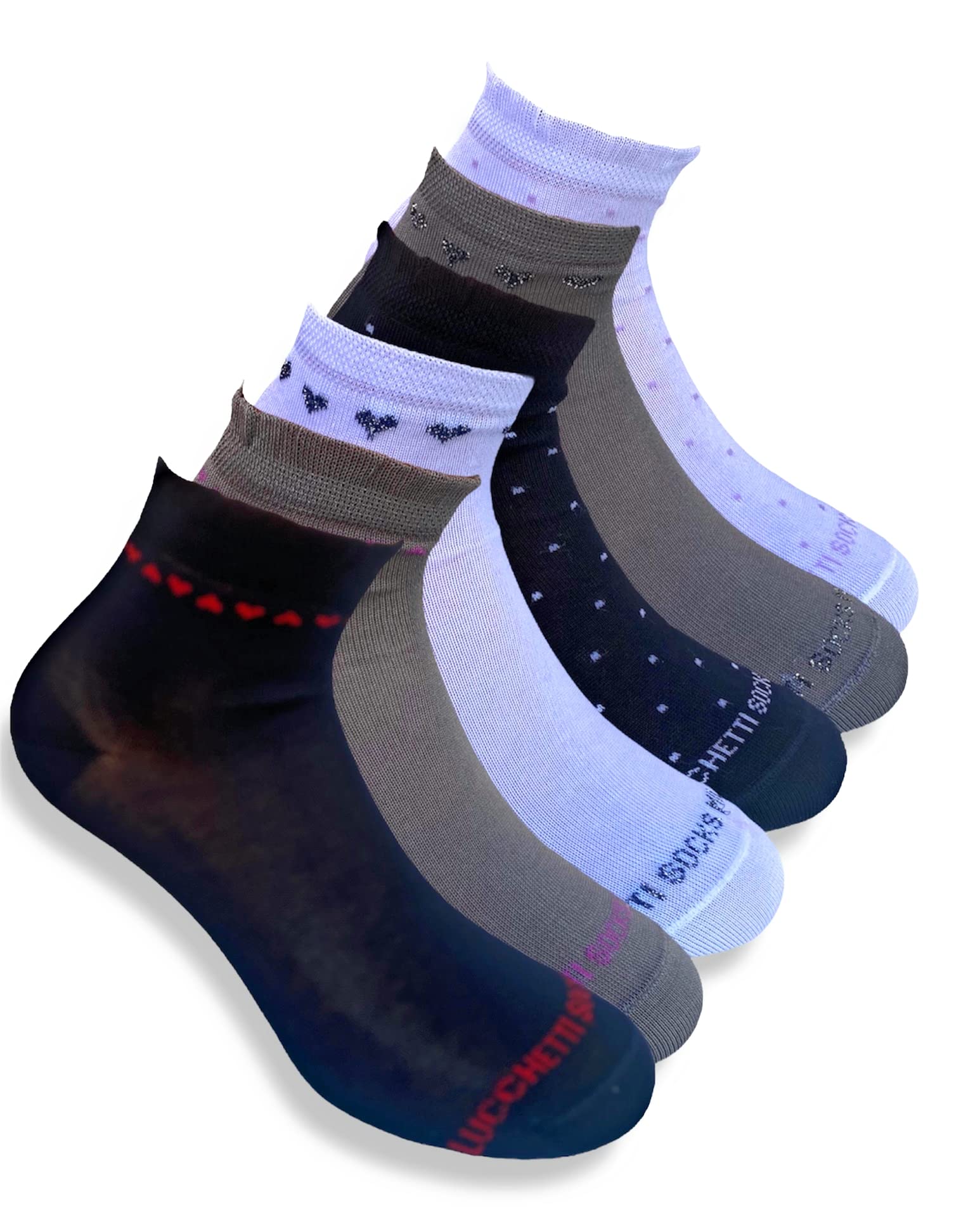 6 Paia Lucchetti Socks Milano Calzini Donna Corti Cotone Mercerizzato Fresco E Leggero Colorati Pois Fantasia Righe Made In Italy
